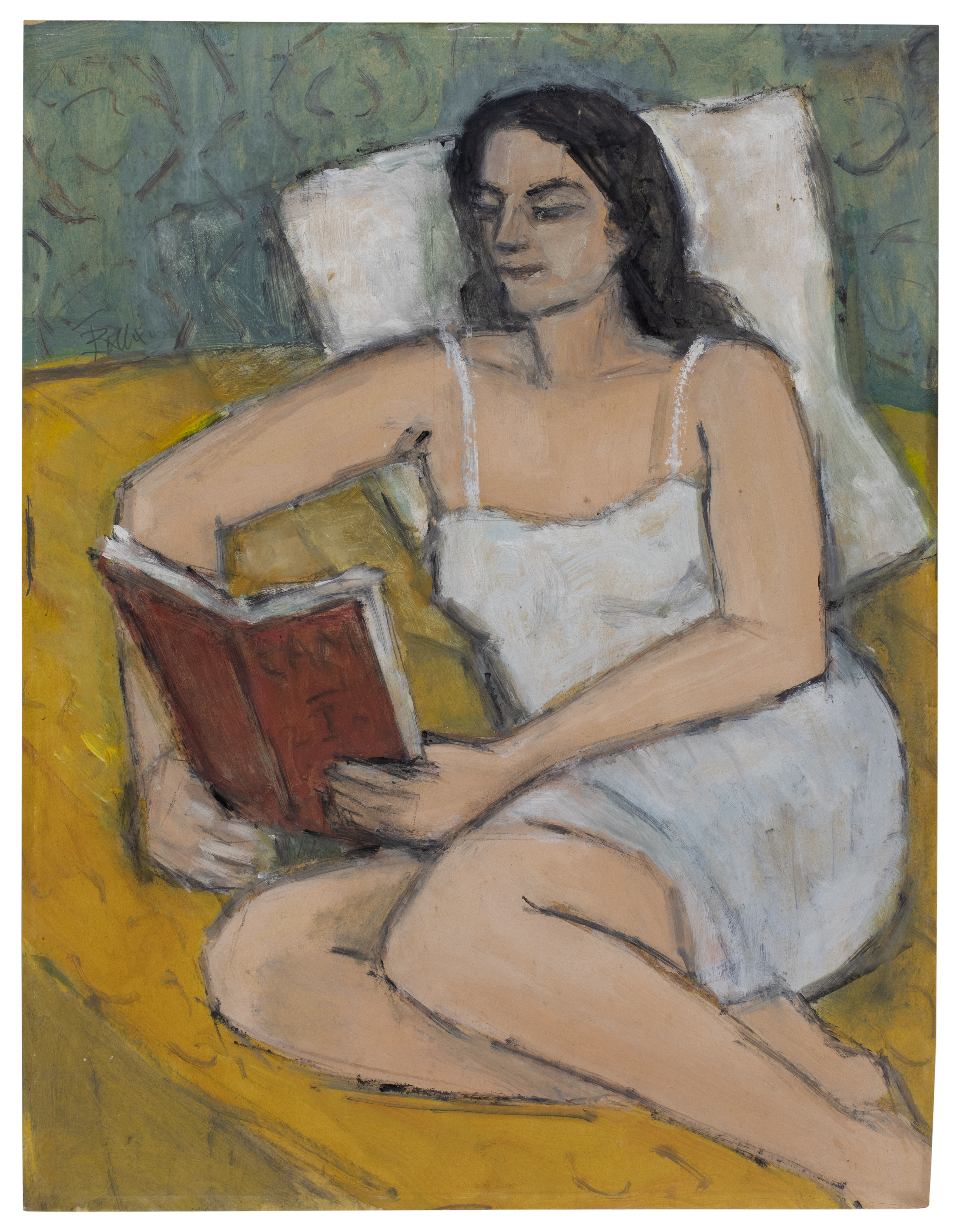 Rezemându-se de spătarul canapelei, cu picioarele ghemuite, femeia ține în mâini o carte deschisă. Brațul stâng se sprijină pe coapse, iar cel drept, prin îndoirea și alungirea sa, creează o impresie de spațiu închis, care rimează totodată cu forma pe care o ia trupul feminin. Pallady nota în jurnalul său, meditând pe seama forțării proporțiilor și dimensiunilor trupului uman în artă: „Acest braț e prea lung, desigur, dar lungimea unui braț poate fi acceptată… dacă exprimă ceea ce vrem noi să exprime. Dar trebuie să-l putem lungi fără a sfărâma armonia, ba dimpotrivă, sporind-o”2.