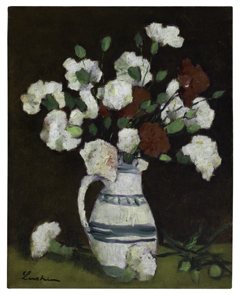 În ciuda degradării rapide a stării de sănătate, începând cu zorii secolului XX, Luchian a lucrat cu devotament, călătorind în țară, în scop curativ, la Govora sau Techirghiol, producând o remarcabilă serie de peisaje la Brebu și Moinești în verile anilor 1908 – 1909, până când a fost nevoit să se retragă în interiorul căminului9. Colecționarul și istoricul de artă Virgil Cioflec, care i-a fost un intim apropiat, nota: „Când nu mai poate lucra, nici de la fereastră, nici din pragul ușii, ca o amintire delicată a altor bucurii, modelele lui de predilecție sunt florile”10. Spre sfârșitul vieții, florile reprezentau așadar un capitol deosebit al creației pictorului, însă nu unul singular, așa cum istoricii de artă tind să generalizeze, acestea nefiind mai frecvente decât alte genuri cultivate de artist decât în ultimii doi ani11. Tot acum, Luchian picta Lăutul, o remarcabilă lucrare decorativă, care ilustrează cu inocență o mamă îmbăindu-și copilul12.